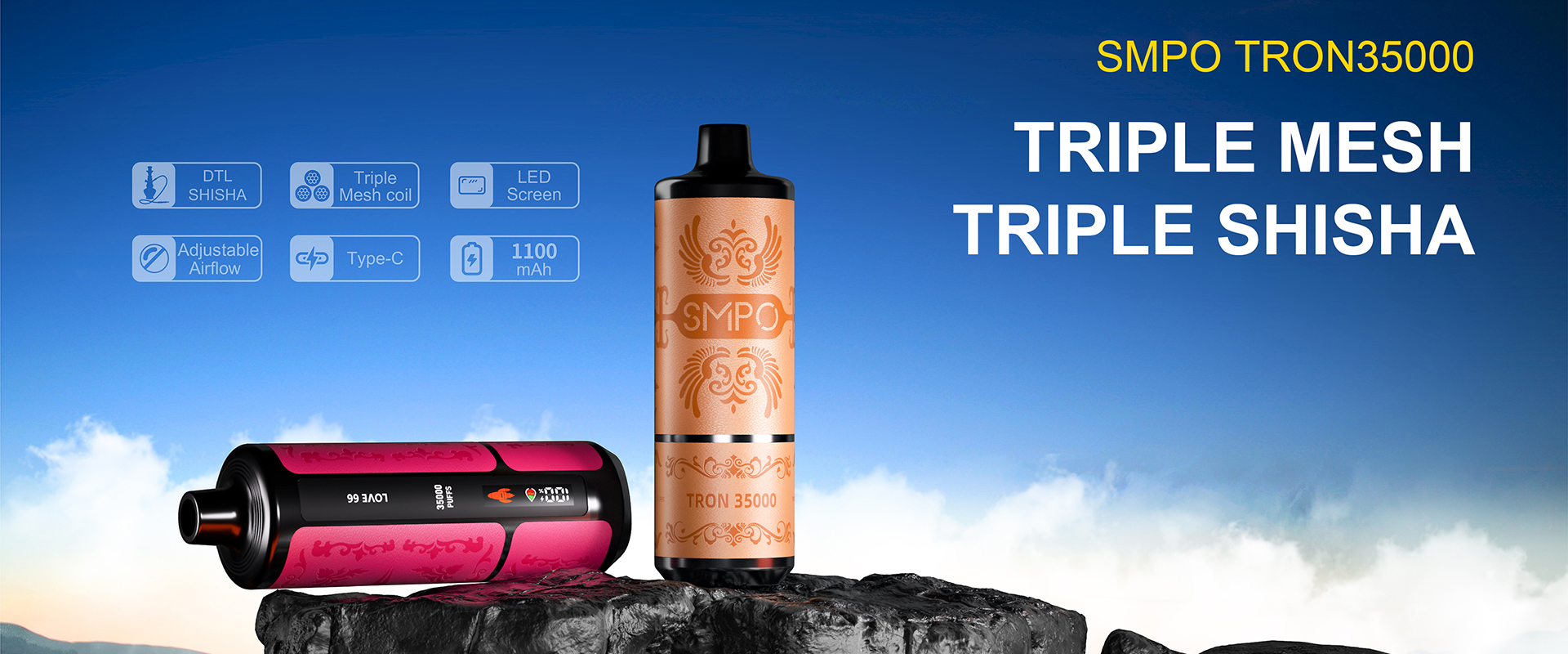 SMPO TRON 35000 features Triple Mesh Coil technology and a smart screen, delivering 35,000 puffs of smooth, authentic shisha performance in one innovative device.